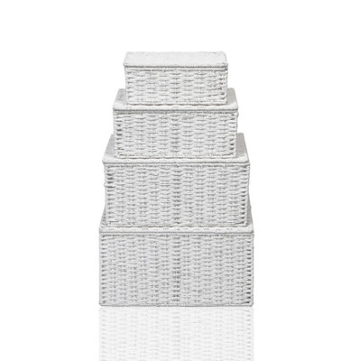 Storage Hamper Basket Set Of 4 with Lid White DIY at B&Q